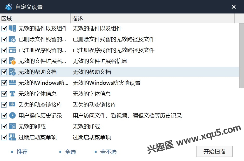 1、快速扫描。快速扫描功能,只扫描系统的安全项目。支持扫描无效的插件及组件已删除的文件,残留无效路径及文件,已注册的程序,残留的无效路径及文件等等;