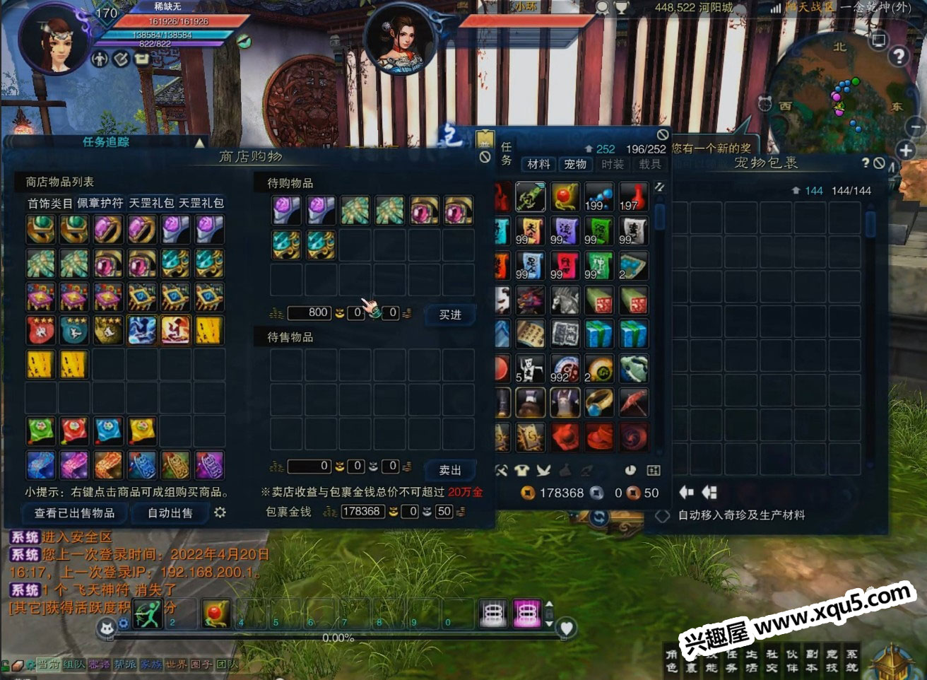 4、在河阳城周一仙、小环、河阳城飞天仙子、炼器师毕纬天、完美礼品使者,处增加商品出售;