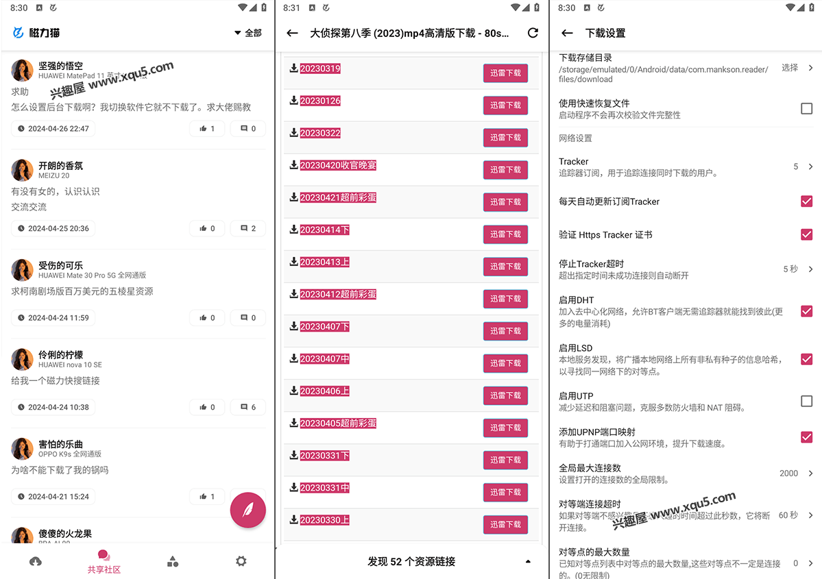 其它功能:磁力猫还在支持 添加云收藏、重新校验文件、强制刷新跟踪、一键复制链接等功能。 如果你有好的资源或者需要什么资源,还可以在内置的社区中发帖求助。翻看社区也有很多意想不到的资源……